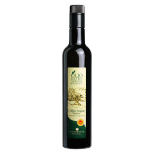 Prodotto con un blend di varietà coltivate in azienda: Peranzana, Gentile di Chieti e Nebbio. Fruttato medio, di colore verde, amaro e piccante di media intensità e in buon equilibrio.
